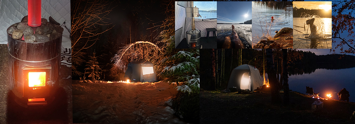 Saunateltat ja telttakiukaat. Saunatelttailu on hauskaa puuhaa varsinkin kylmään vuodenaikaan.