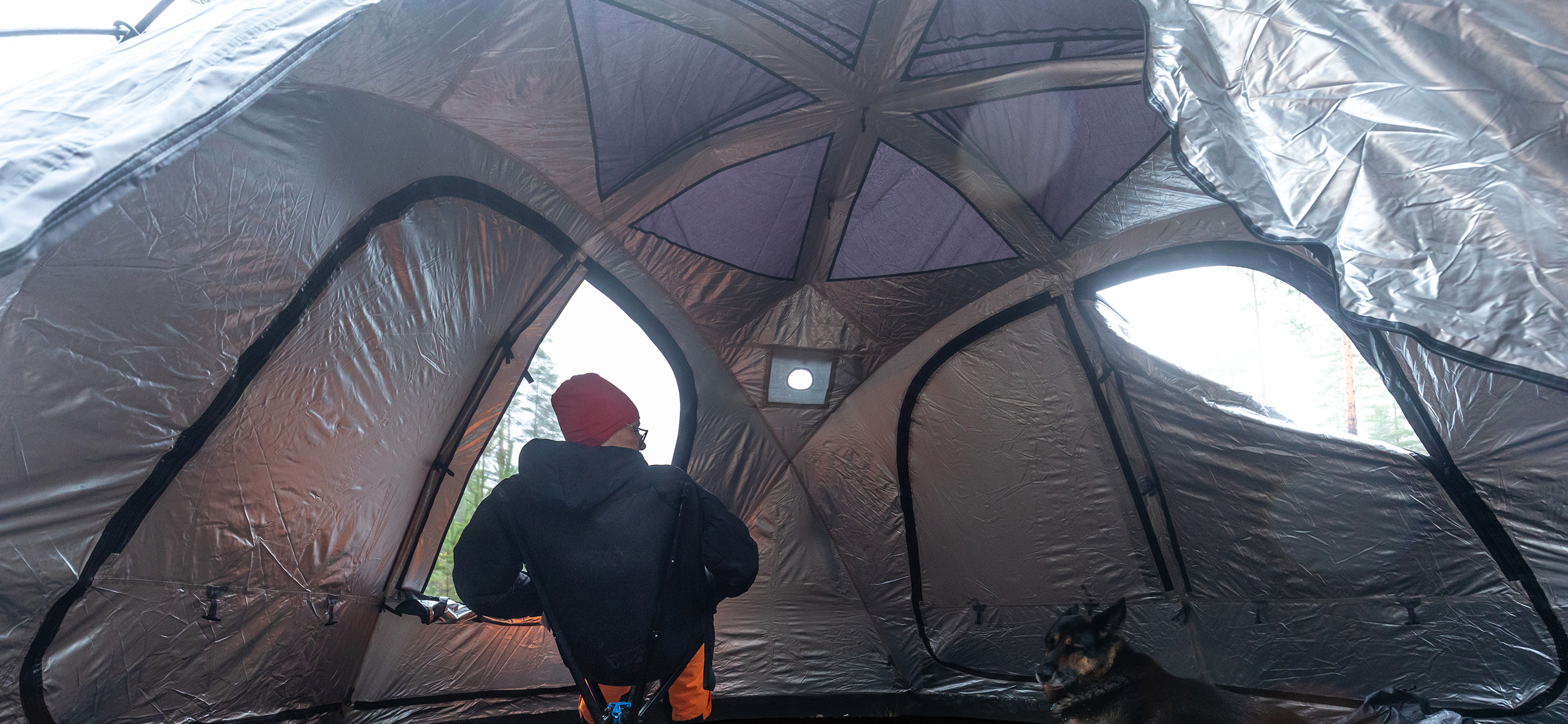 Kotateltan kartiomainen muoto on luonnon oma oivallus talvimajoitteeksi. Sen jyrkkä katto ei ainoastaan ohjaa lunta ja vettä tehokkaasti pois, vaan mahdollistaa myös turvallisen kamiinan käytön. Korkea, tilava rakenne tekee teltasta miellyttävän tukikohdan - siellä mahtuu jopa seisomaan, vaihtamaan vaatteita ja säilyttämään varusteita kuivassa.