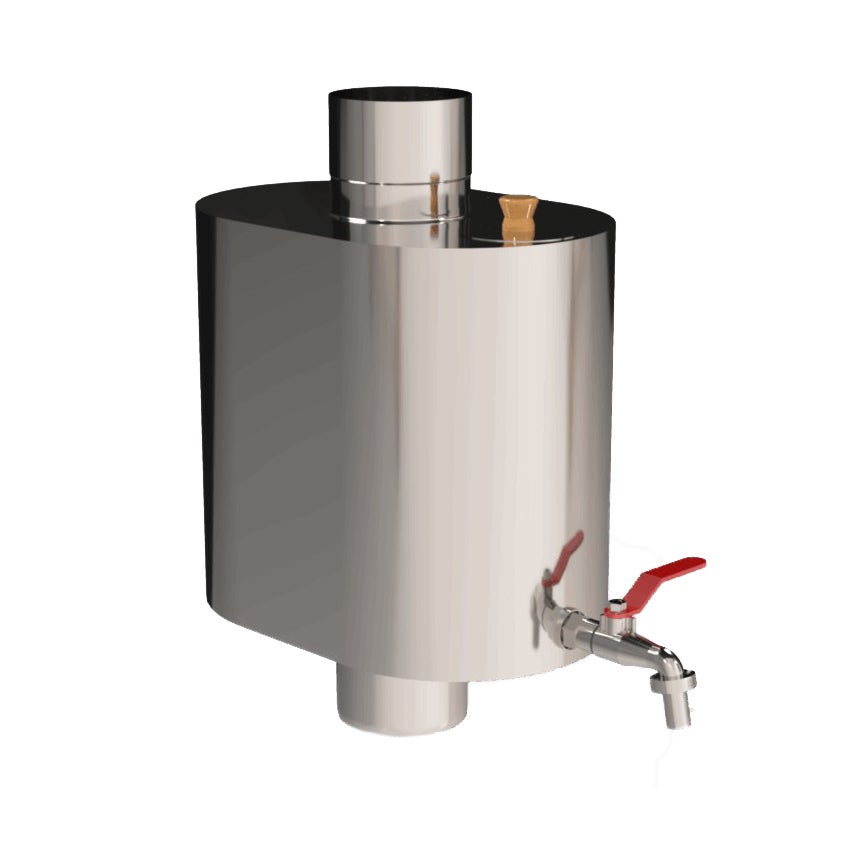 12L vedenlämmitin Inord Explorer 2.0 Compact kiukaan savuputkeen- 90mm. Valmistettu rosterista. Ovaali kaunis muotoilu sointuu hyvin kiukaaseen. Mukana hana.